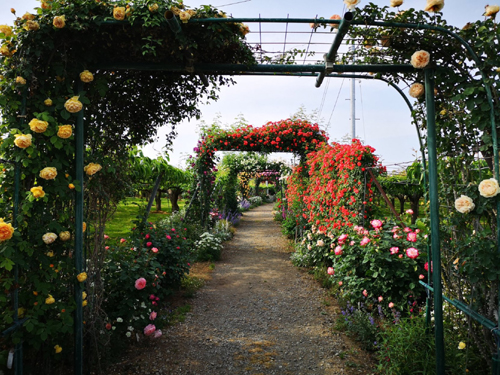 佐藤梨園のローズガーデンの様子、広すぎず狭すぎず内容が蜜のガーデンです。